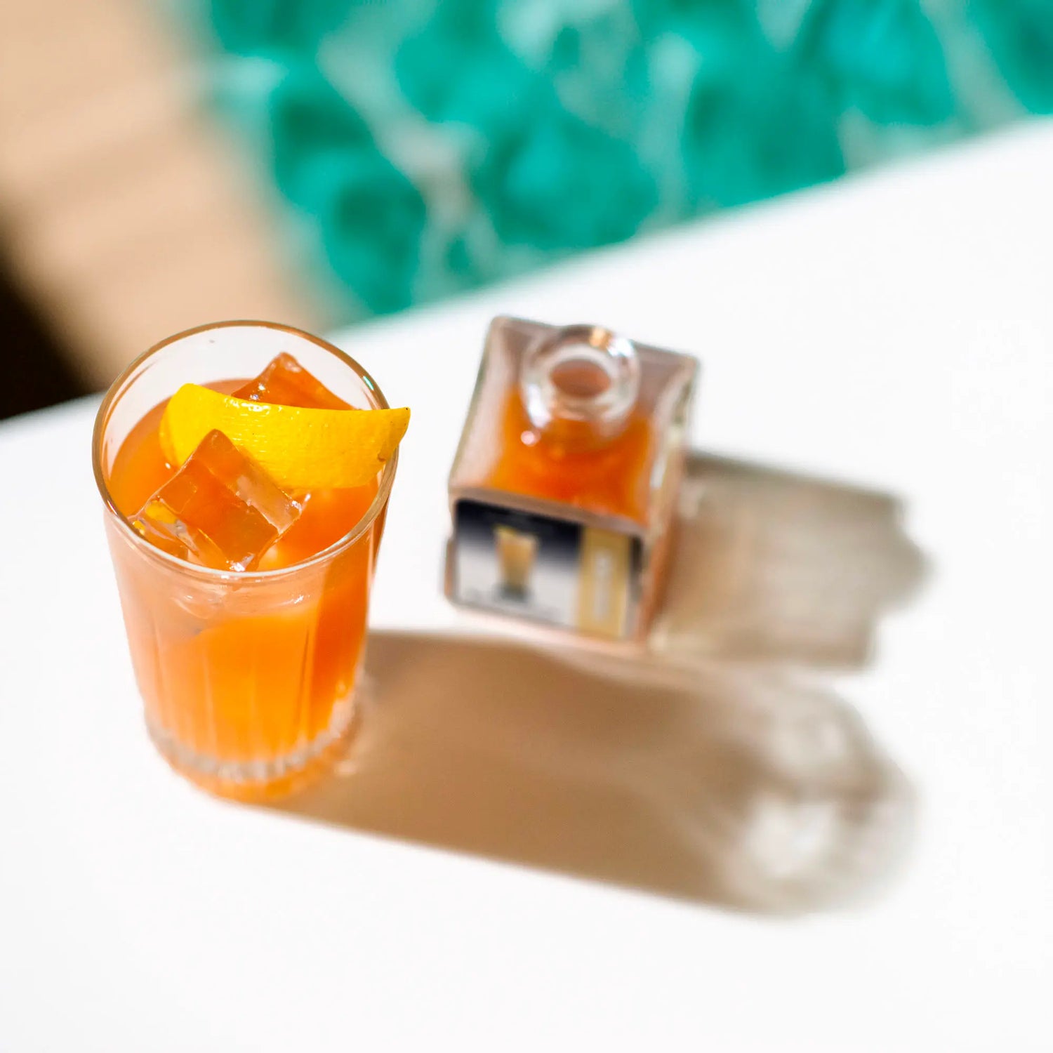 Versa il contenuto della bottiglia in un bicchiere colmo di ghiaccio, mescola dolcemente fino a raggiungere temperatura e diluizione gradite, guarnisci con una scorza di arancia.