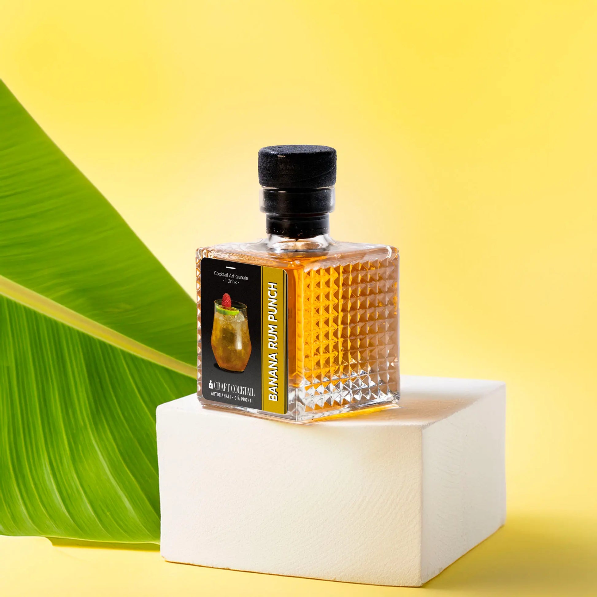 Cuban and Jamaican rum, Sciroppo vaniglia, Liquore alla banana, Angostura bitters, Soluzione malica, Acqua