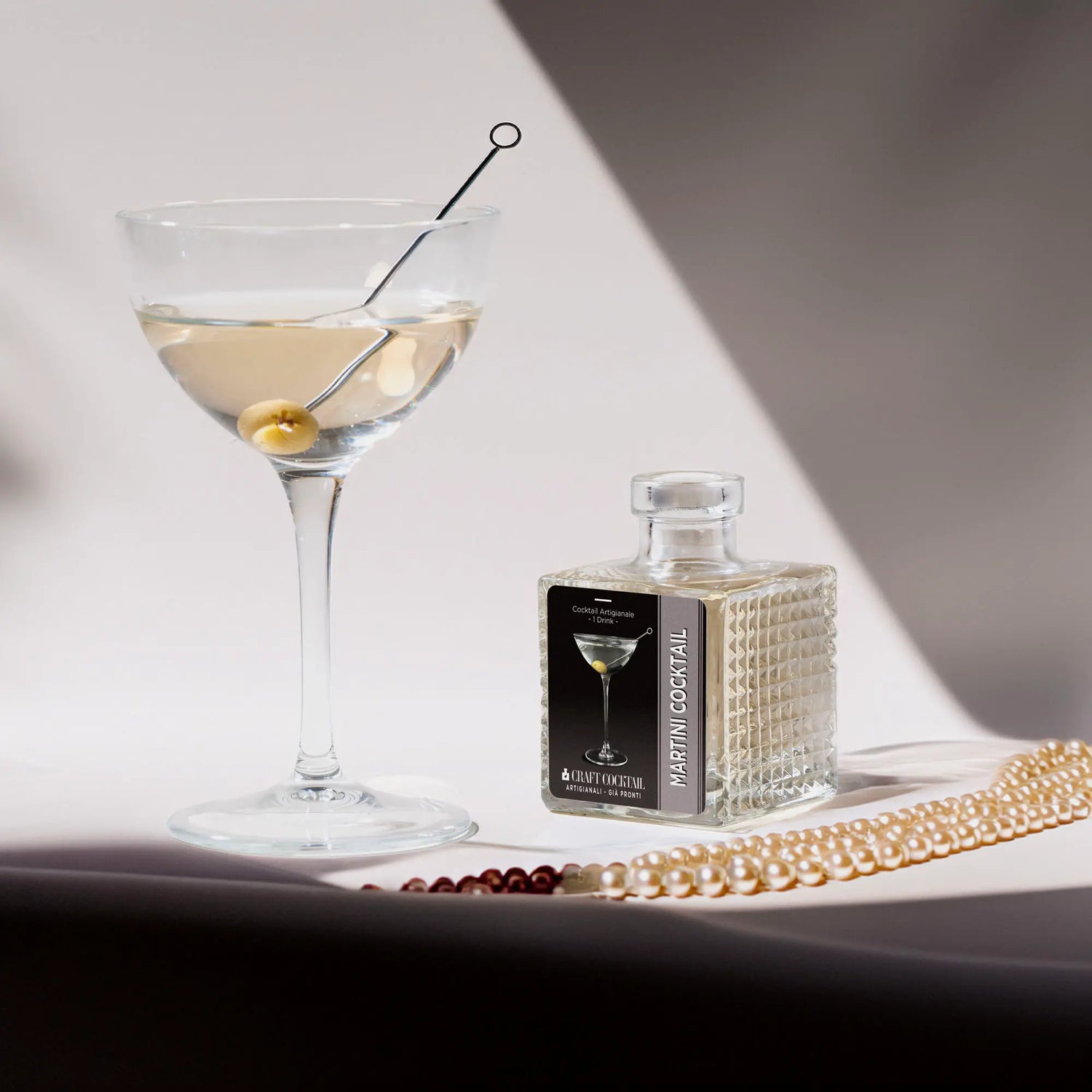 Versa il contenuto della bottiglia ben freddo direttamente in coppetta, completate con una scorzetta di limone o un'oliva.