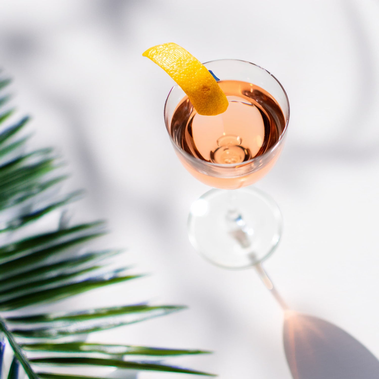 Versa il contenuto della bottiglietta ben freddo direttamente in coppetta, se volete aggiungete una scorzetta di limone sul bordo per completare il drink.