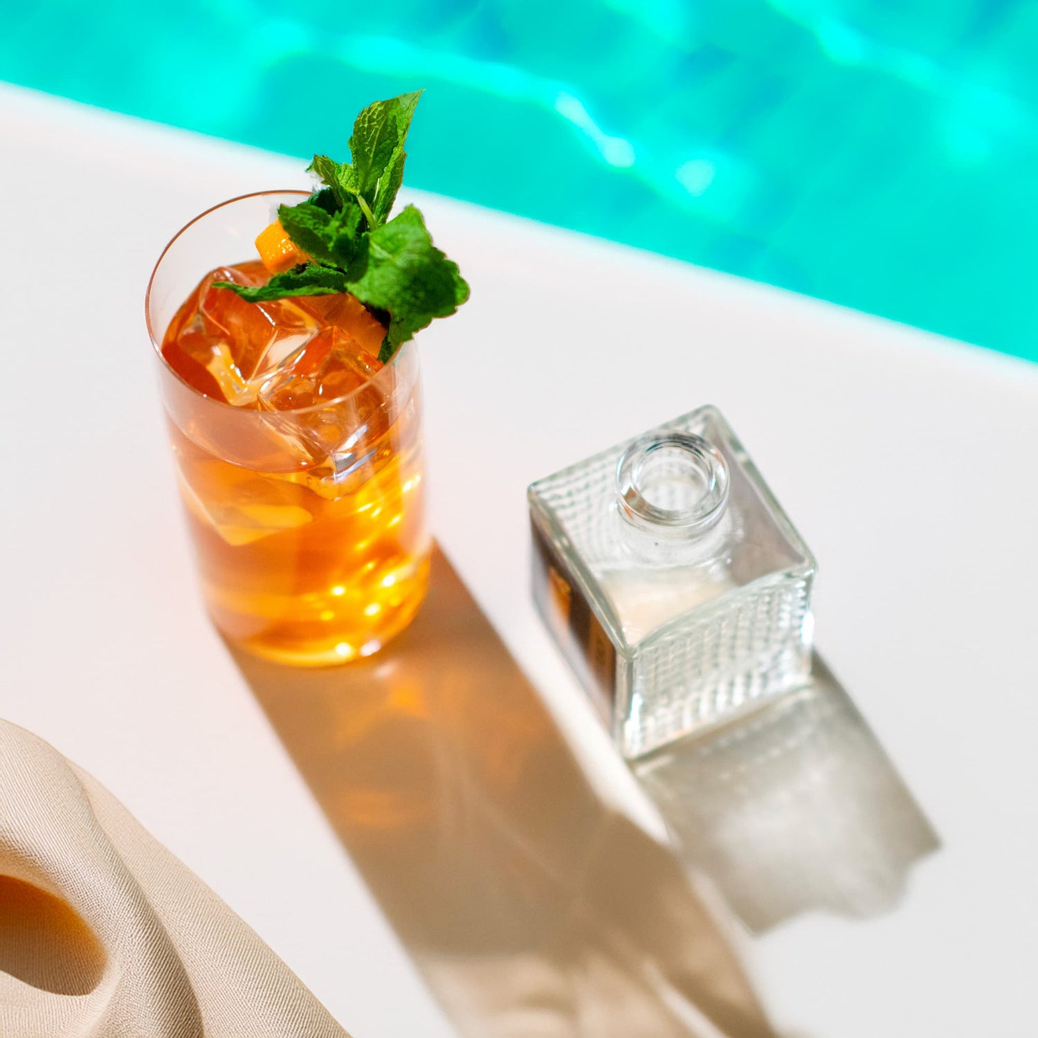 Versa il contenuto della bottiglia in un bicchiere colmo di ghiaccio, mescola dolcemente fino a raggiungere temperatura e diluizione gradite, guarnisci con una scorza di arancia e un ciuffo di menta fresca.
