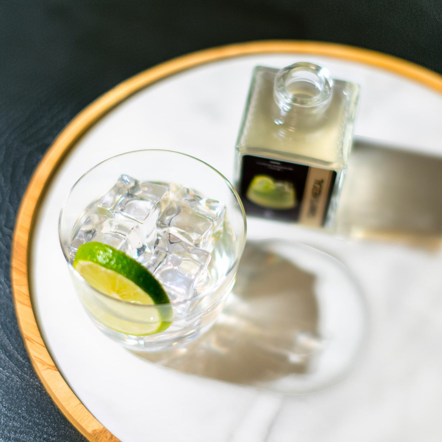 Versa il contenuto della bottiglia in un bicchiere colmo di ghiaccio, mescola dolcemente fino a raggiungere temperatura e diluizione gradite, guarnisci con una fettina di lime.