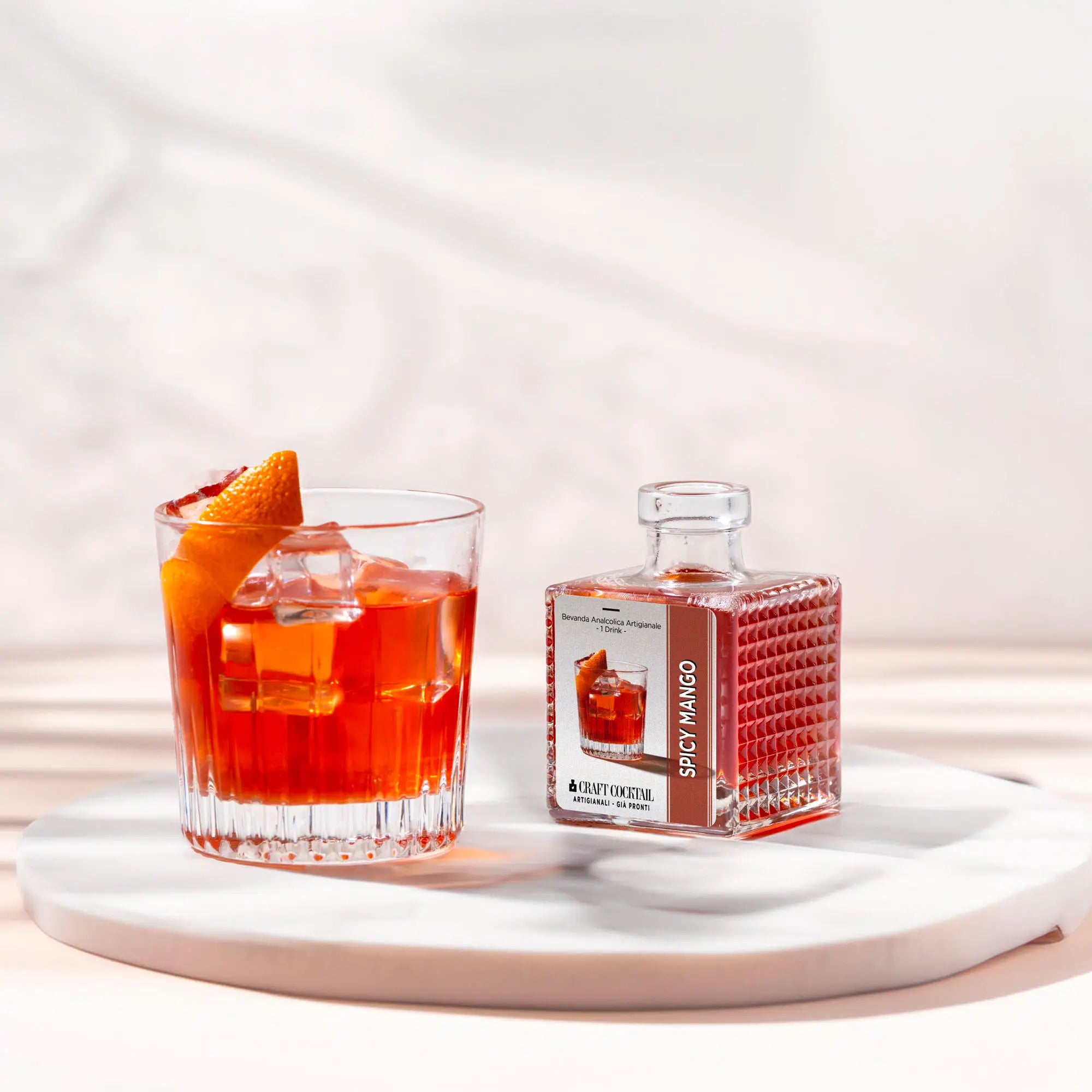 Martini Vibrante, Sciroppo spicy mango, Tè alla pesca e rosa, Soluzione citrica